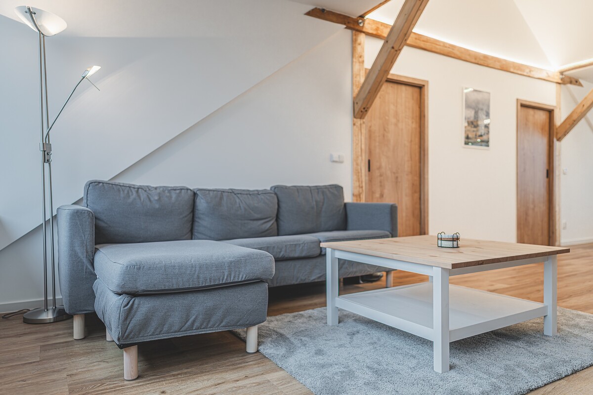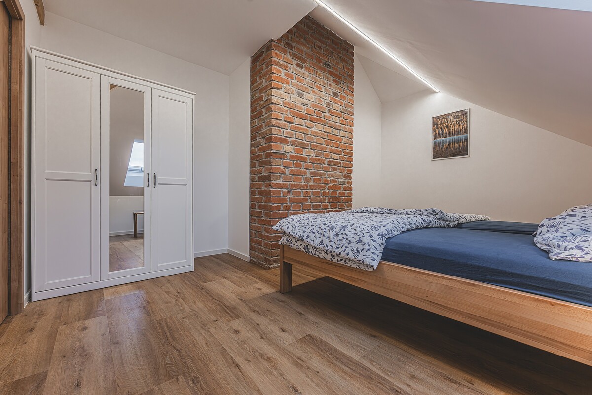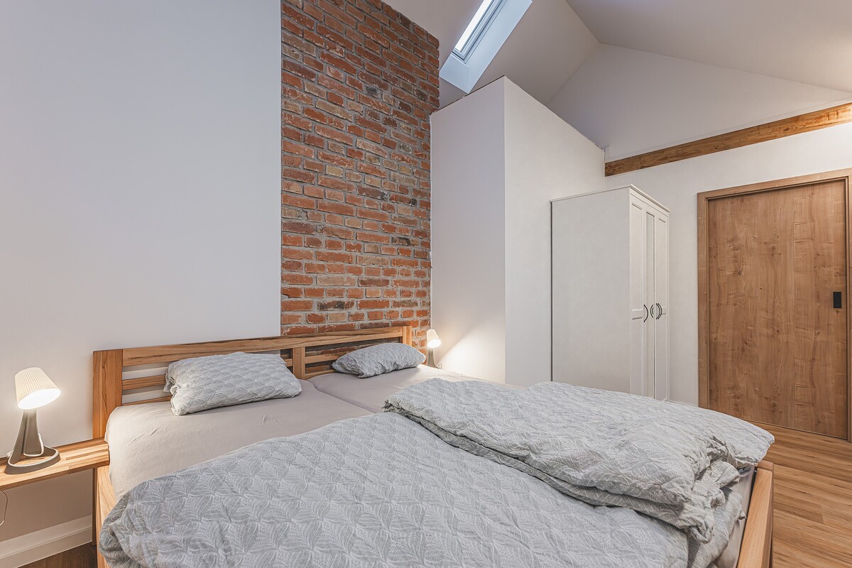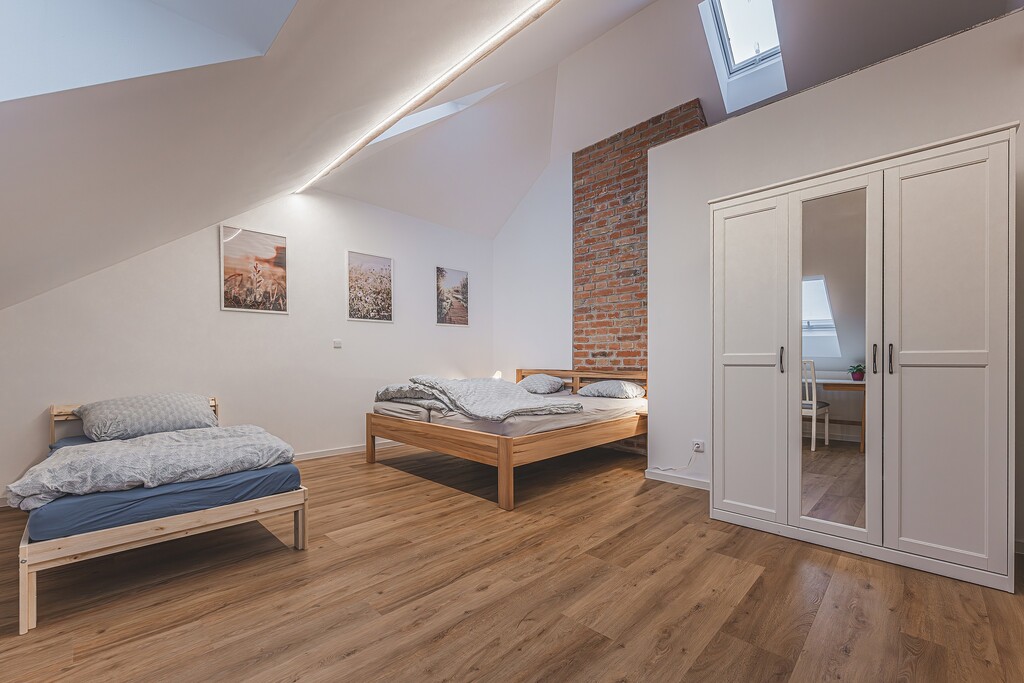 Rodinný apartmán v Hradci Králové nabízí pohodlné ubytování pro až 5 osob. Dvě ložnice s manželskými postelemi a další lůžko zajistí dostatek místa. K dispozici jsou také dvě dětské postýlky.