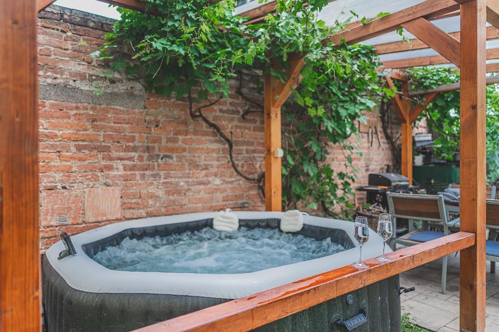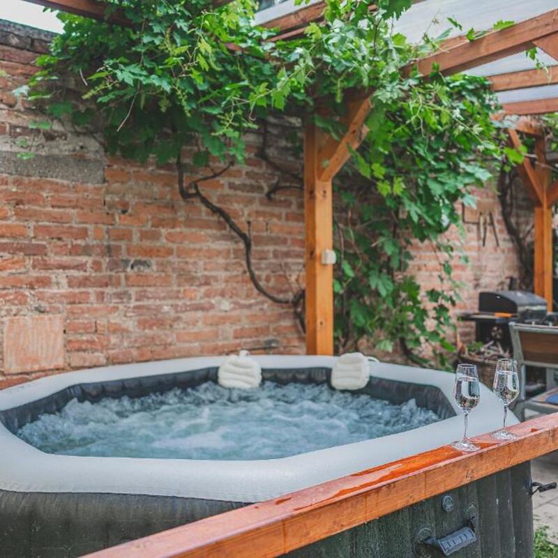 Relaxujte v naší zahradě a užijte si ve vířivce příjemné chvíle.