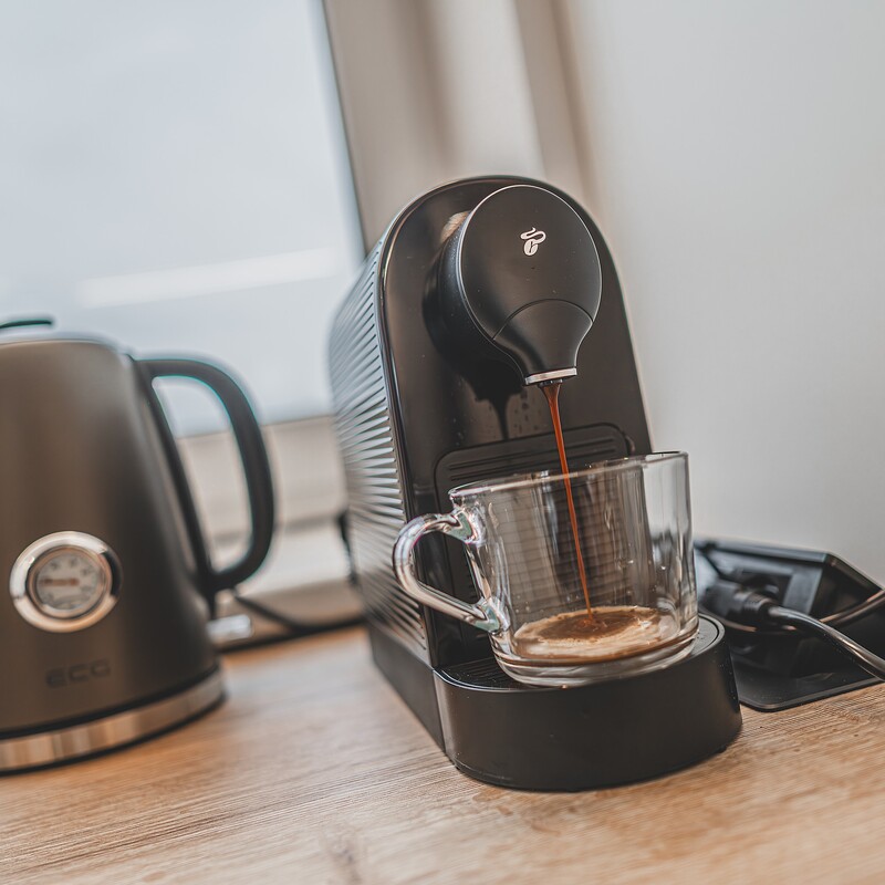 Také máte rádi kávu? K dispozici je Tchibo kávovar se zásobou kapslí.
