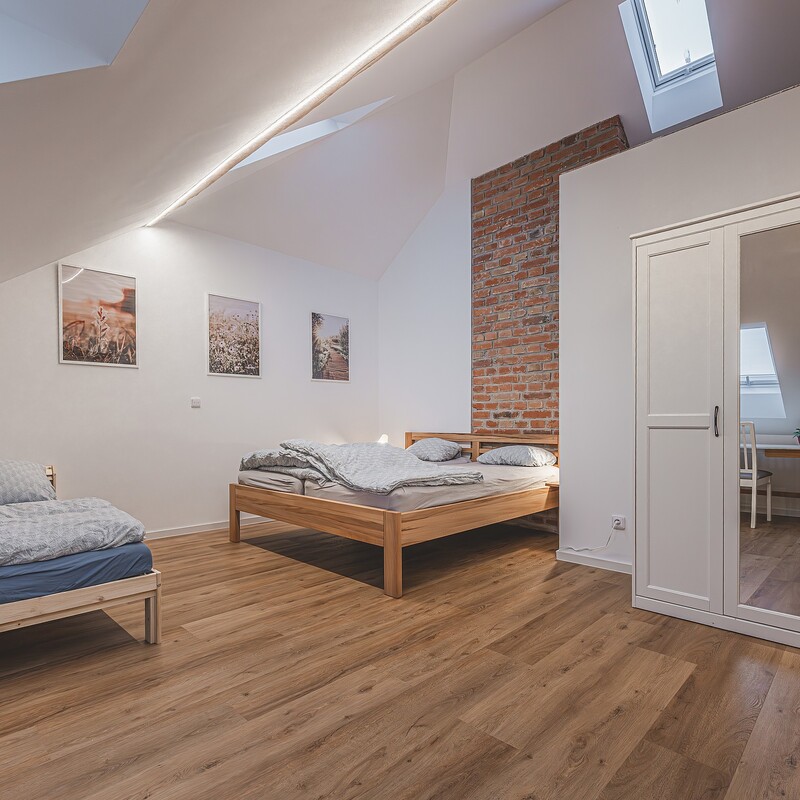 V prostoru staré půdy našeho rodinného domu jsme realizovali půdní vestavbu. Takovou, do které bychom sami chtěli jako hosté přijet.