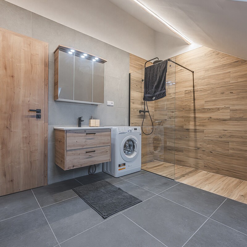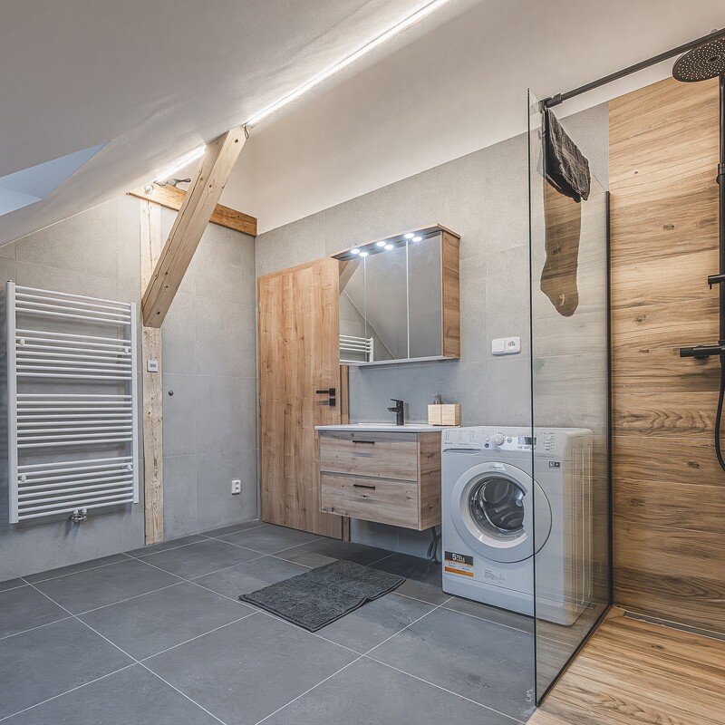 Klidnou sprchu v moderní koupelně ocení každý.